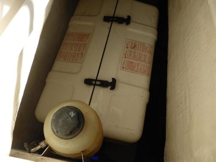 Galley with fridge cool box for gas hob and oven and grill double sink and also a microwave. Plenty of storage for all stores and galley equipment.