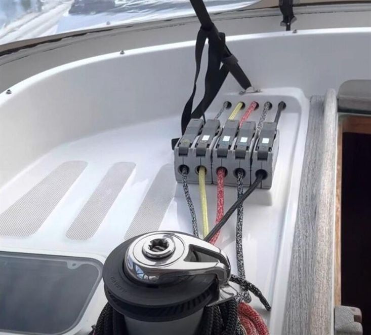 3 Raymarine i70 displays MFD at the helms for speed depth and wind information.