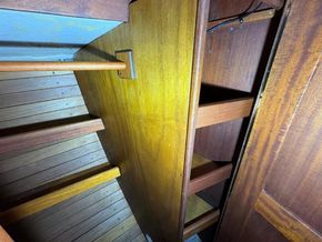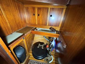 A separate heads compartment is located forward, featuring a molded basin that slides out and a new Baby Blake manual underwater toilet.